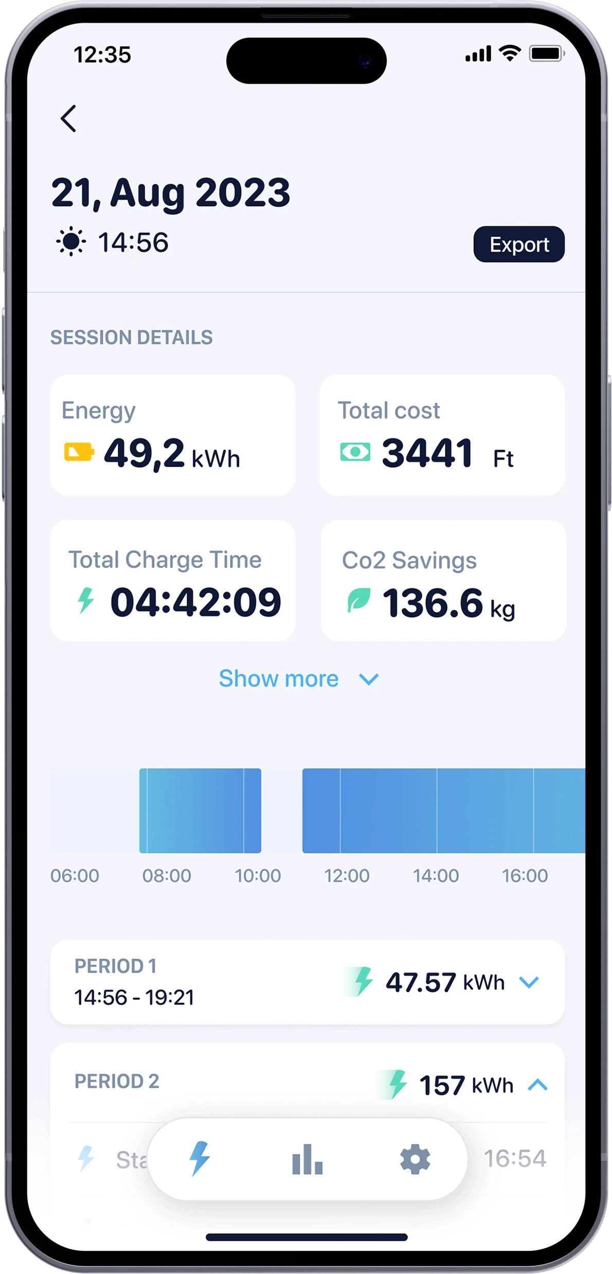 You can access real-time charging statistics, viewable across different timeframes. Easily export this data to Excel for your own detailed analysis.